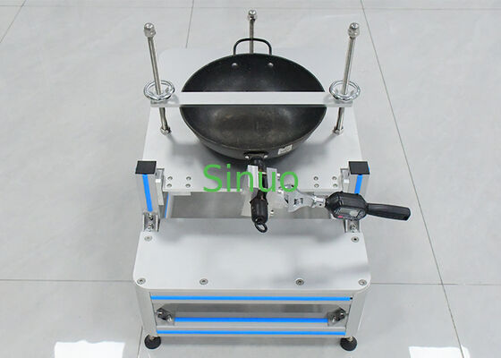 The system includes a high-precision digital torque wrench and a universal sample fixture, making it suitable for various cookware types and handle designs.